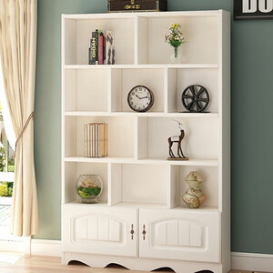书架加入了造型柜门设计,美观同时也增加了隐私度。选用莫干山实木生态板材,无缝连接稳定性能佳,摆放更多书本无压力。 上榜理由: