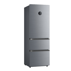 美的时尚三开门冰箱,精致的拉丝金属面板,彰显艺术气息。双变频风冷无霜设计,保鲜效果好,一级能效节能省电。