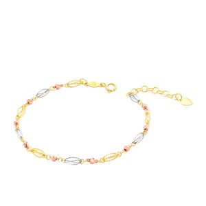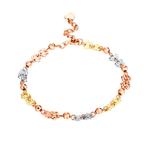 这款三色K金手链,搭配立体车花工艺,时尚易搭加分个人魅力。可调节延长链设计,从容勾勒出纤细皓腕,彰显优雅大方气质。 上榜理由: