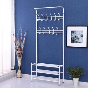 简约的框架衣架,体积小,可以节省更多占地空间,就是小户型使用也方便。上面挂衣架,下面置物架,容纳空间很充足。
