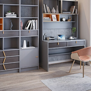 转角书桌,助力高效办公,书房整齐有序,办公学习更专心,上柜下桌,办公收纳不冲突,简约百搭,多风格都合适。 上榜理由: