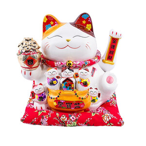 大号陶瓷材质招财猫,以高温工艺烧制而成,瓷质结实久用不易开裂。经典红金配色,配上八方来财的中文汉字,尽显吉祥喜庆质感。 上榜理由: