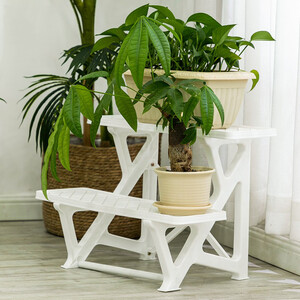 实用梯形设计,让花架利用率更高,更美观;每层托班有两根PVC涂层钢管,不易弯曲变形;PP树脂原料,轻巧便利,组装容易。