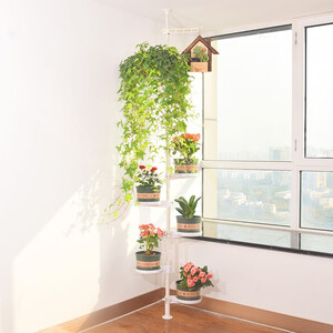 这款花架采用了伸缩杆的设计,可以立在天花板与地板之间,利用了上层空间,从而节省地面空间。而在安装上,新手也能很快掌握。