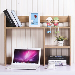 木纹色设计,纹理清晰美观,为您的书桌带来自然的气息;书架承重能力强,即使您摆放重物也不容易断裂。