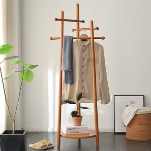 实木杆错位交叉,实现多挂头收纳衣物,放在家中更显档次,底部收纳圆盘设计,选用进口橡胶木,坚固更耐用。