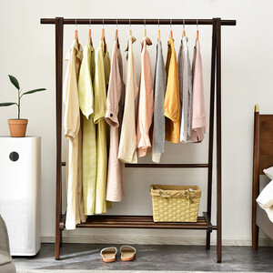 胡桃木色落地衣帽架,清晰醒目,简约大气,适配多种环境。搭配分区收纳设计,可挂衣,可存放包包、杂物,满足不同需求。 推荐商品