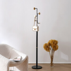 胡桃木色落地衣帽架,清晰醒目,简约大气,适配多种环境。搭配分区收纳设计,可挂衣,可存放包包、杂物,满足不同需求。
