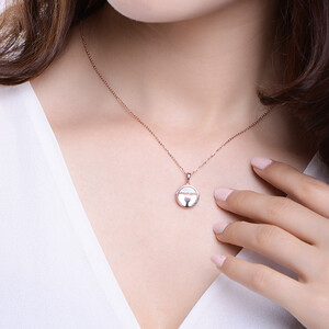 项链采用18K金材质,佩戴舒适。哆啦A梦的铃铛造型,充满童趣。内里镶嵌母贝,在灯光下闪耀着动人的光泽。