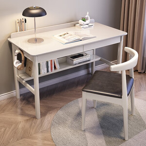 拥有书架、挂钩和抽屉三大储物空间,更具实用性。加以口字型桌脚支撑,使结构稳定,让您使用更舒心。