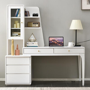 采用优质油漆,表面光滑无异味,抗霉变,不变黄。具有两层书架,增加收纳空间,让书桌更整洁。