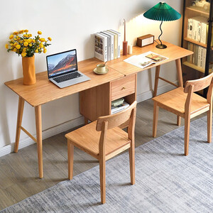 北欧现代简约风格书桌,采用进口橡胶木制作,木质坚固耐用防水耐热,搭配环保油漆喷涂,使用起来更加安心。