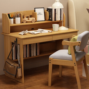 北欧时尚转角书桌收纳空间更多,优质实木材质纹理清晰美观,圆角设计防磕碰更加安全,书架采用护栏设计防止掉落。