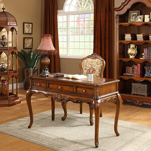 采用欧式风格设计,搭配描银雕花点缀,使书桌整体看起来更加优雅大气,摆放在书房中,为生活增添仪式感。