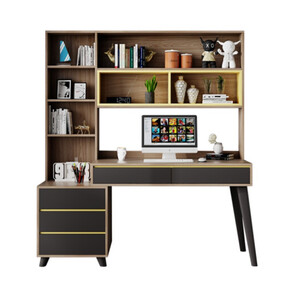 书柜和书桌一体式设计,十分实用。大容量的储物空间,平稳宽敞的桌面。