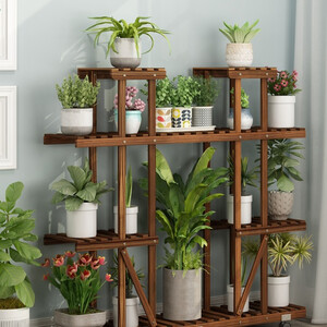 碳烤实木框架,稳定性更强,经久耐用不变形。高低错落造型,各种高矮植物都能放,满足不同使用需求。