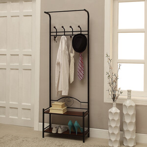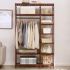 上层可挂置衣服、毛巾和包包等,底部的双层搁板空间可收纳鞋子或其他物品,实用美观,适用范围广。