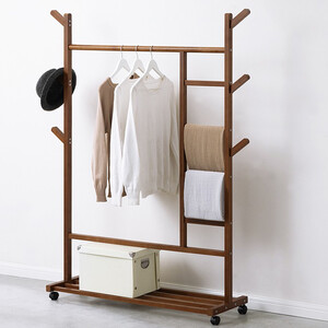 这款衣帽架占地面积小,可多场景使用。采用底部大空间的设计方式,可放置鞋子或者收纳盒,方便拿取。