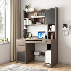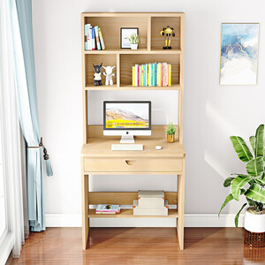 书架书桌一体化设计,多功能使用,存储大量物品,节约空间。桌面后方人性化的挡板,避免物品掉落。