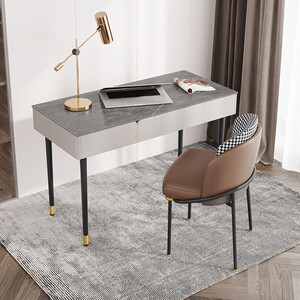 精选进口岩板台面,经过1280度高温制作,抗磨耐刮,不易出现划痕。自带双USB接口和3个三孔插口,帮助提高办公效率。