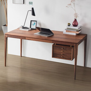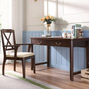 简洁利落的书桌造型,配上黑胡桃色调,彰显出复古格调。边角采用圆润的打磨工艺,避免碰撞。