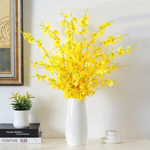 黄色跳舞兰,清晰醒目,为环境增添活力感。结合优质的绢布,色彩鲜明,仿真效果好,更具观赏性。