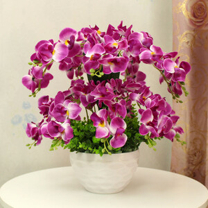 仿真蝴蝶兰,通过手工工艺制作,逼真精致。结合优质的绢布材料,显色度高,亮丽持久,符合家用标准。