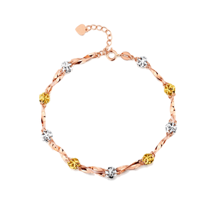 手链由三色18k金金花环绕而成,代表着三生三世,永远斩不断的情缘。结合清新时尚的色调,展现出年轻人的活力与奔放。