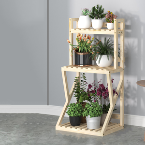 三层花架,层多容量大,可摆放多盆绿植,满足收纳需求。因其采用实心木材制作,承重力强,久用不易塌陷。