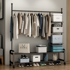 黑色的金属材质,简约又不失大方。右侧分隔式安排,可以收纳更多的衣物。开放式的设计,省去了开门或拉拉链的麻烦。 推荐商品