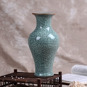 仿古开片青釉花瓶的釉质佳,质地清亮剔透,外观古朴又大方,单独摆放也能很好装点空间,展现主人高文化底蕴。