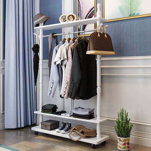 本款衣帽架底部增设万向轮,使得移动轻松方便,中央设有加固横杆,稳固承载您心爱的衣服,松木框架打造,物美耐用。 上榜理由: