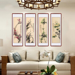 梅兰竹菊图案,构图大气,色彩淡雅,手绘制作,优雅美观,营造书香气息,提升家居气色。