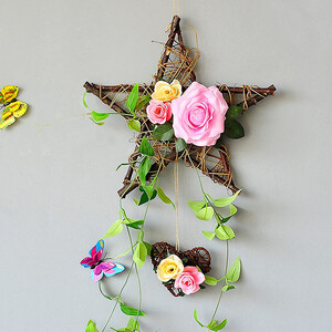 透明粘钩可以固定在瓷砖、大理石等多种材质物体表面,用途广泛;藤编五星花环设计,文艺气息浓郁,令人一见倾心。