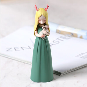 一个带有龙角的小女孩抱着一个白色的兔子,简单的设计温馨又美好,让艺术融入我们简单的生活中。