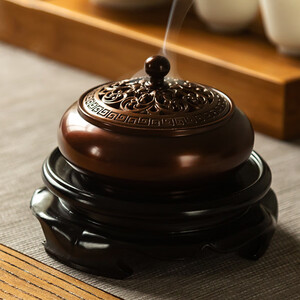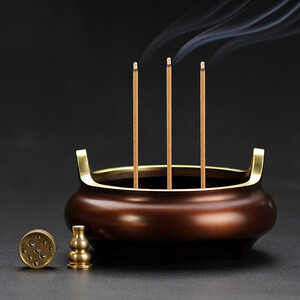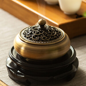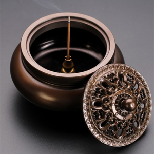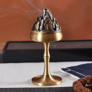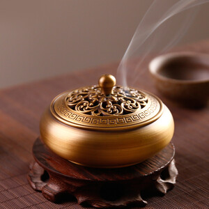 盘香,线香,香粉皆可放置其中,实现一炉多用。黄铜制作,造型优美,既可用作摆件,又可用来熏香。