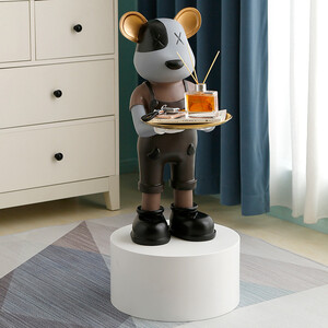 高低托盘的造型,让墨镜熊趣味横生,打造出温馨的居家风格。金属材质的托盘你结实耐用,轻松收纳日常所需小物件。