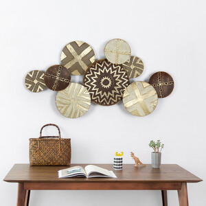 大小不一的圆盘设计,与墙面的距离也错落有致,富有异域风情,增强了视觉上的立体感受。铁制材料打造,经久耐用,不易变形。 推荐商品