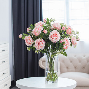 造型圆润简洁的花瓶设计,简约中又流露着精致,好看百搭。搭配仿真的花朵,瞬间让你的家颜值倍增,尽显时尚家居格调。 上榜理由: