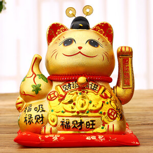 本款神采奕奕的金猫,代表着财源滚滚来,一手八方来财,一手招财进宝,寓意吉祥;胸前一个聚宝盆,立体元宝设计,祝生意兴隆。 上榜理由: