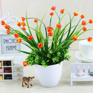 花盆造型奇异的郁金香,颜色火红火红,看着比较喜庆。花瓣采用绢布原材,花朵不易破损,也没有化学染色成分。 上榜理由: