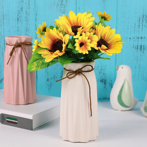 黄色的向日葵,栩栩如生,摆在卧室,让人身入其境。口袋造型的花瓶,高温烧制,瓶内瓶外都有釉面,长时间使用不会漏水。