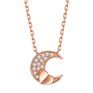 月牙吊坠线条柔美干净,爱心与钻石丰富整体层次,提升产品档次。链条外形纤细灵动,连接处平整顺滑,佩戴更加安心。 上榜理由: