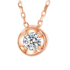 此款看似简洁的K金项链,吊坠中镶嵌了一颗光泽度和璀璨度都超高的钻石,戴在脖颈间倍感吸睛与时尚,轻松成为关注的焦点。