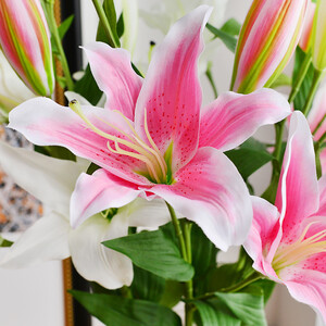 百合花寓意百年好合,而仿真花永不凋谢,摆放在家寓意更加美好;叶子上采用非粘胶技术,经过高温压烫,让其长期是也不易脱落。 推荐商品