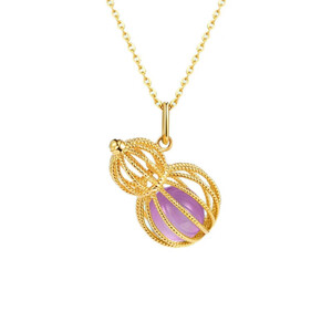 千叶 镂空紫晶 K金吊坠