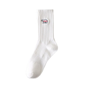 袜身设计简约,色彩上也采用了沉稳简洁的纯色配色,搭配品牌logo的点缀,具有利落的商务格调。