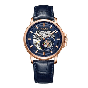 镂空表盘设计,与深蓝色基调相结合,让您秀出低调复古的魅力风格。搭配皮革和精钢双表带,满足不同的使用需求。 推荐商品