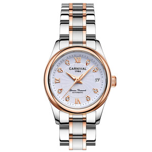 表圈镶嵌了70颗闪耀锆钻,搭配精湛的爪镶工艺,美观大气,不易掉钻;自然母贝表盘搭配玫瑰金表壳,白金配色清新自然。 上榜理由: