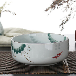 端庄典雅的中式风格,圆润的器具采用陶瓷手绘和釉下彩工艺;金鱼悠闲在水里游着没扰起一丝乱流,色彩素雅诗情画意。 推荐商品